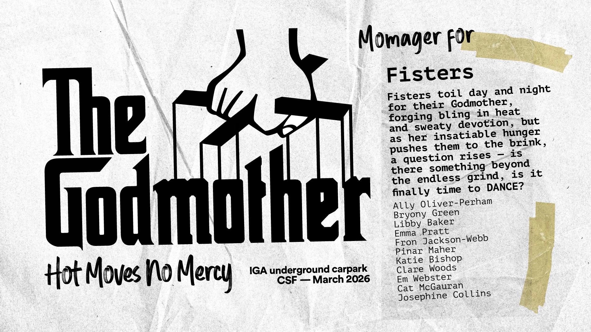 Fisters toil day and night for their Godmother, forging bling in heat and sweaty devotion, but as her insatiable hunger pushes them to the brink, a question rises — is there something beyond the endless grind, is it finally time to DANCE?